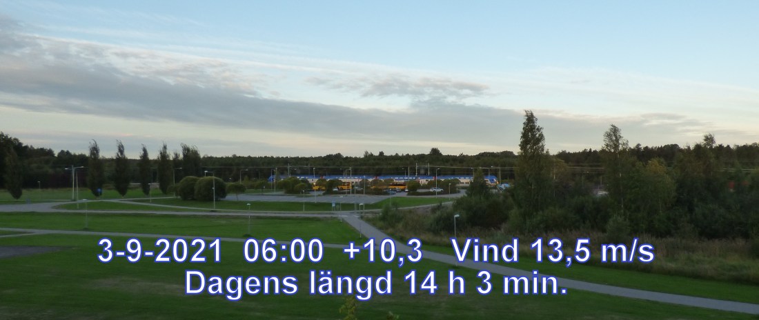 +12 °C Vind 13,5 m/s Halvklart och uppehåll Känns som +8° Daggpunkt +7° Fuktighet 72.4% Soluppgång 05:47 Solnedgång 19:50 Dagens längd 14 h 3 min.