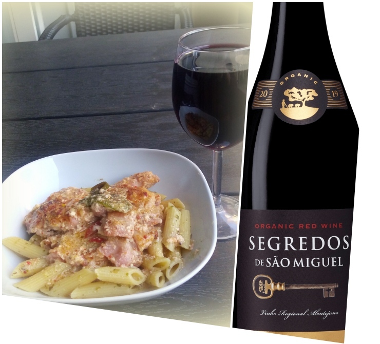 Därefter blev det matdags,och det blev en smakrik Kycklingpasta,den var det ett riktigt drag i..I glaset hade vi en röd Portugis som smakade riktigt bra.