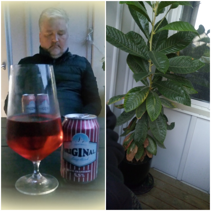 Jag sätter min slant denna gång på Paulaner den till höger.Det blev sedan lite balkonghäng,som avslutning tog vi en färdigblandad gindrink..Jag blev riktigt impad av hur sonen har lyckats med en av Mespilakärnor han satte för drygt 2 år sedan,,den är nu från överkant krukan till topp 1,07 meter,gröna fingrar kanske..Han har döpt den till ”Pompalompan”,vet ej varför..