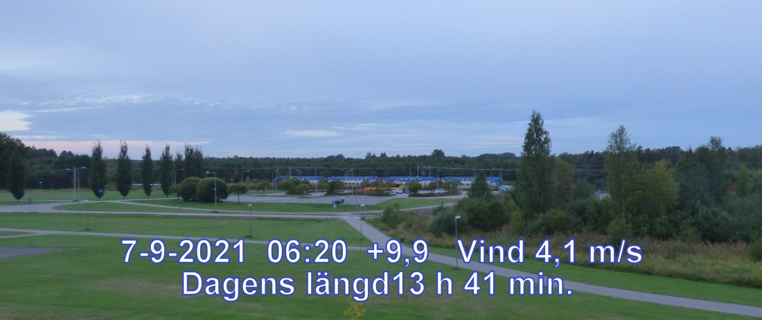+13 °C Vind 4,1 m/s Mulet, men troligen uppehåll Känns som +11° Daggpunkt+11° Fuktighet 87.6% Soluppgång 05:57 Solnedgång 19:38 Dagens längd13 h 41 min.