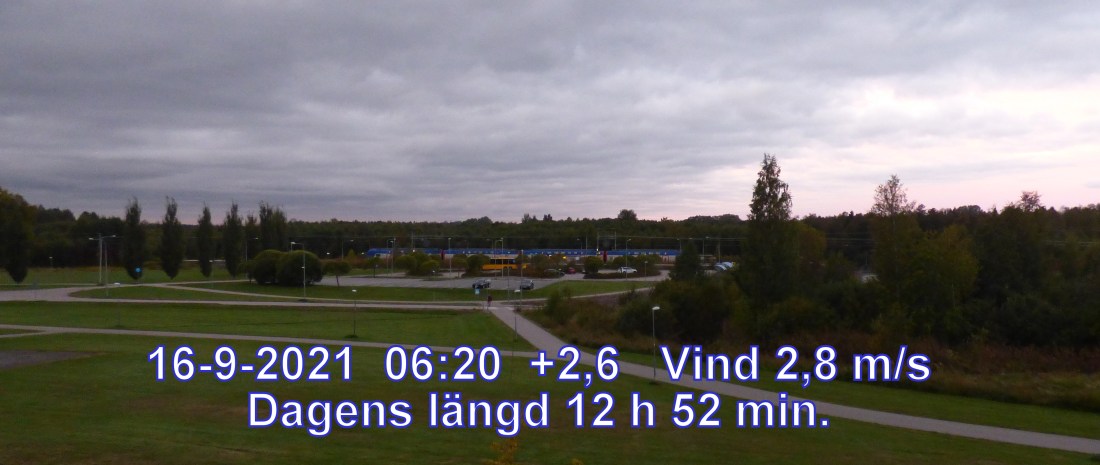 +10 °C Vind 2,8 m/s Mulet, men troligen uppehåll Känns som +9° Daggpunkt +6° Fuktighet 71.6% Soluppgång 06:18 Solnedgång 19:10 Dagens längd 12 h 52 min.
