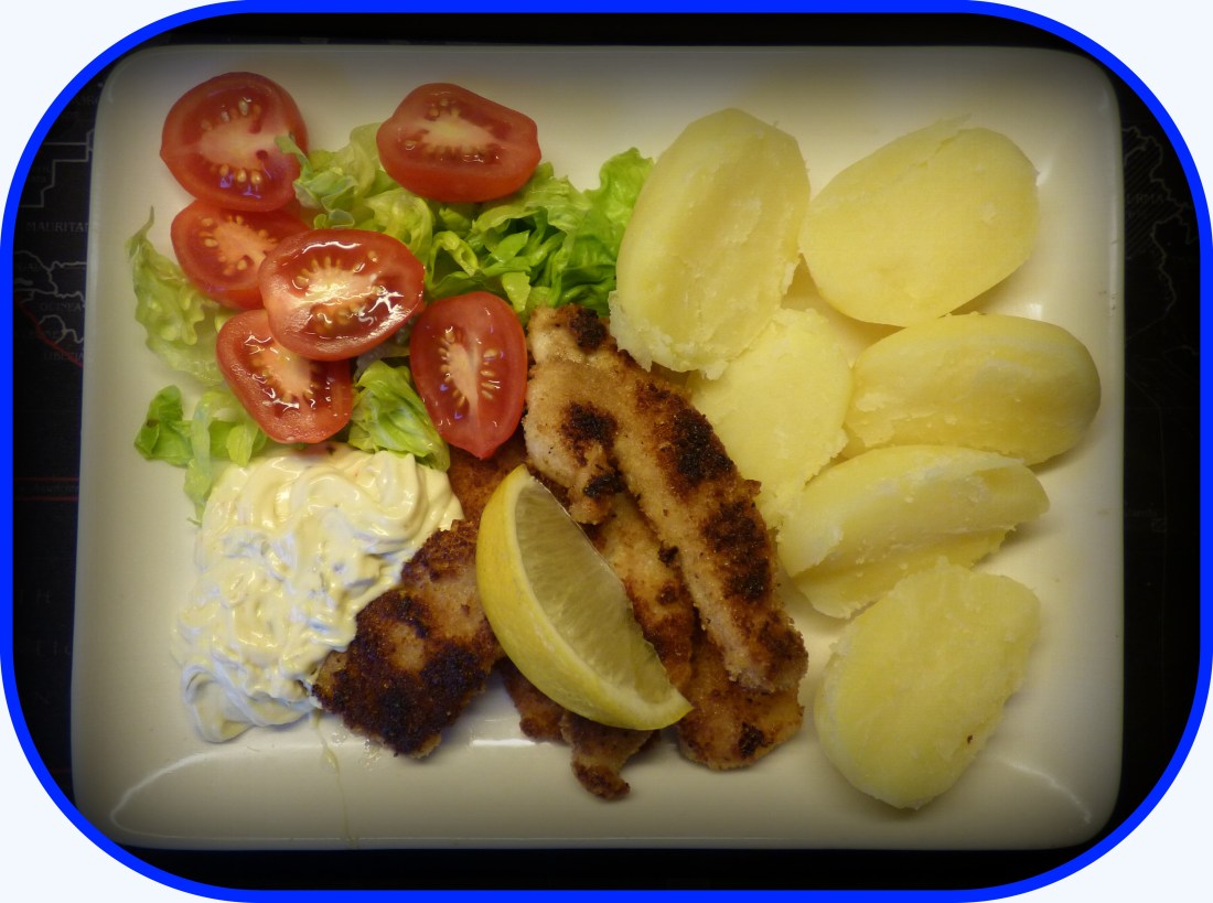 Idag blev det goäta på riktigt,detta tack vare min kusin Karin i Åsele..Jag hälsade på henne i Åsele förra veckan,och då fick jag med mig lite abborrfiléer,absolut benfria,som Karin dragit upp ur Ångermanälven.Om jag säger gott,så är det bara förnamnet..Tack Karin.Det blev kokt potatis,remuladsås citron och lite grönt.Har så det räcker till Goäta en gång till.Tack Karin.