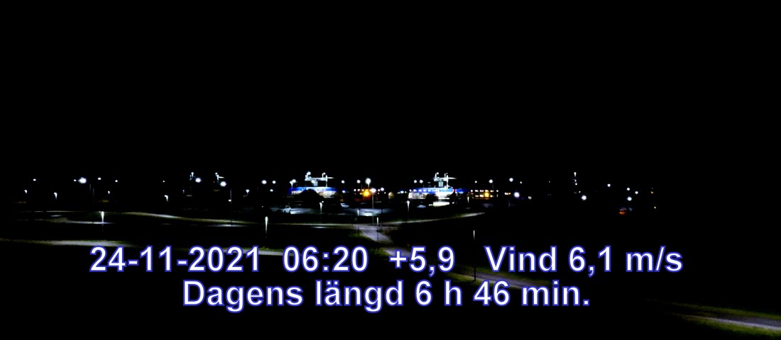 +6 °C Vind 5,7 m/s Mulet, men troligen uppehåll Känns som+2° Daggpunkt+3° Fuktighet 85.1% Soluppgång 08:16 Solnedgång 14:57 Dagens längd 6 h 41 min.