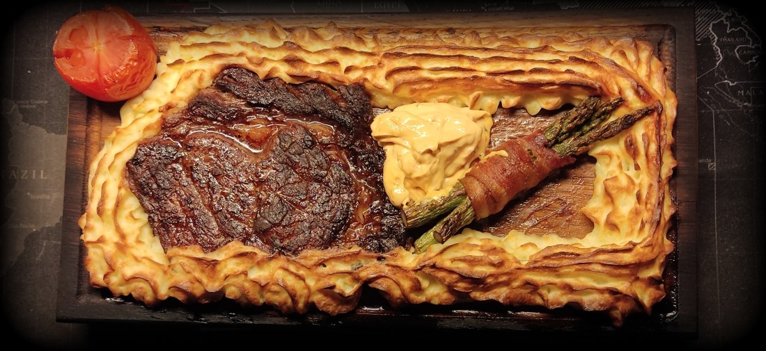 Dagens glädjeämne förutom Frida blev dagens middag,en planka med en perfekt Entrecote,med tillbehören baconlindad sparris tomat och bea.I glaset samma röda Italienare som igår..