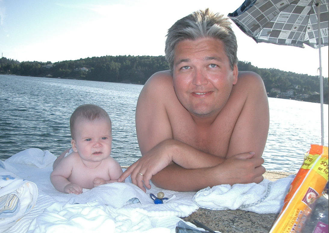 En mycket glad storebror (Loke) 2 år med lillasyster (Moa) 1 månad.2008.