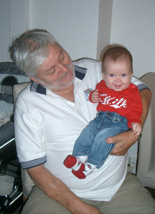 En bild där mamma pratar med Kajan Kaj,Juni 2011,Kaj ca 1 år mamma 91 år.