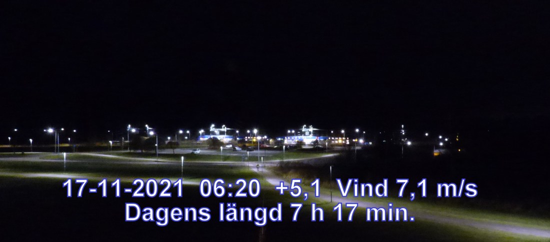 +6 °C Vind 7,1 m/s Mulet, men troligen uppehåll Känns som+1° Daggpunkt+4° Fuktighet 85.7% Soluppgång 07:56 Solnedgång 15:13 Dagens längd 7 h 17 min.