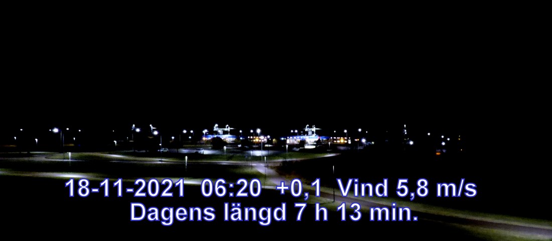 +4 °C Vind 5,8 m/s Molnigt, men troligen uppehåll Känns som-1° Daggpunkt+2° Fuktighet 92.5% Soluppgång 07:58 Solnedgång 15:11 Dagens längd 7 h 13 min.
