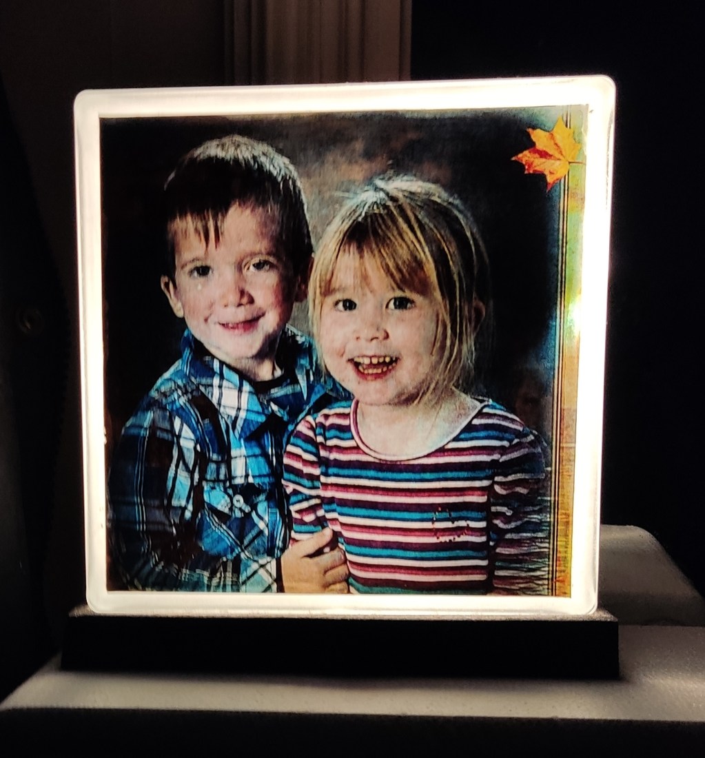 Hur var det nu med min fråga om den pryl som jag gjort,och som betyder så mycket..Det var ju en armatur jag har i min hall,med en bild på Barnbarnen.