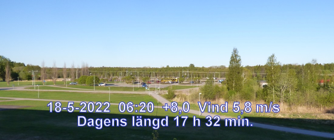 +6 °C Vind 5,8 m/s Mest klart och uppehåll Känns som +2° Daggpunkt +2° Fuktighet 73.4% Soluppgång 04:01 Solnedgång 21:33 Dagens längd 17 h 32 min.