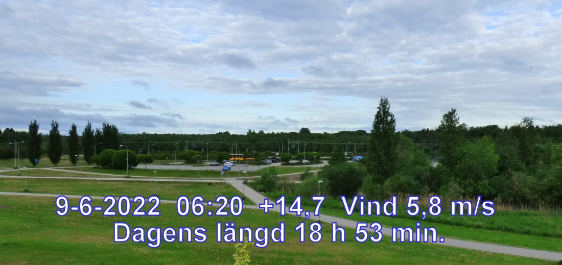 +13 °C Vind 5,8 m/s Mulet, men troligen uppehåll Känns som +11° Daggpunkt +12°Fuktighet 91.2% Soluppgång 03:23 Solnedgång 22:16 Dagens längd 18 h 53 min.