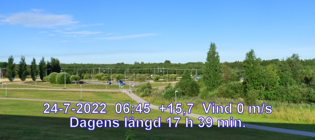 +13° C Vind 0 m/sMulet, men troligen uppehåll Känns som+12° Daggpunkt+12° Fuktighet 96 % Sikt 38675 m Soluppgång 04:06 Solnedgång 21:45 Dagens längd 17 h 39 min.