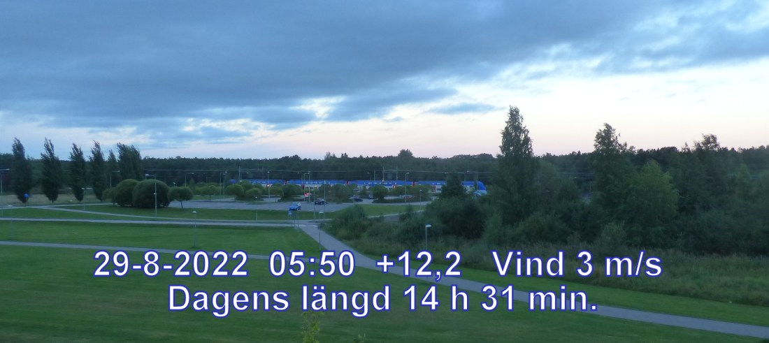 +8° C Vind 3 m/s Klart och uppehållsväder Känns som +6° Daggpunkt +6° Fuktighet 87 % Sikt 50000 m Soluppgång 05:35 Solnedgång 20:06 Dagens längd 14 h 31 min.