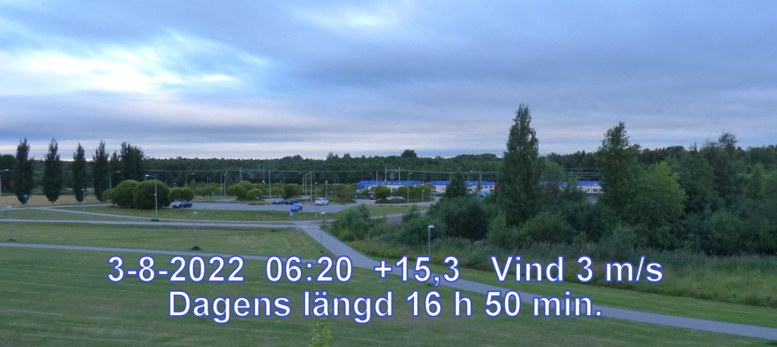 +14° C Vind 3 m/s Halvklart och uppehåll Känns som +13° Daggpunkt +11° Fuktighet 84 % Sikt 46194 m Soluppgång 04:30 Solnedgång 21:21 Dagens längd 16 h 50 min.