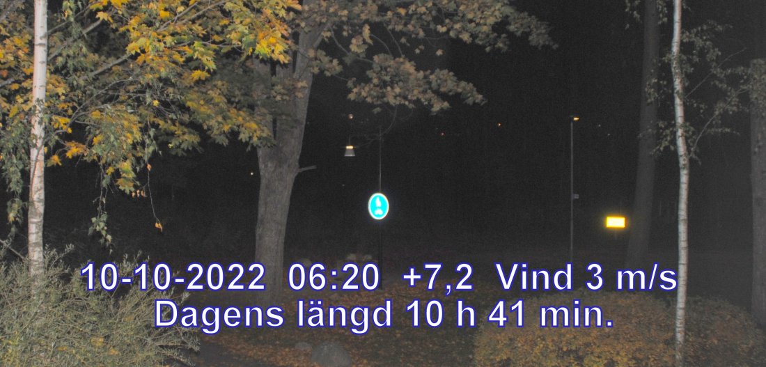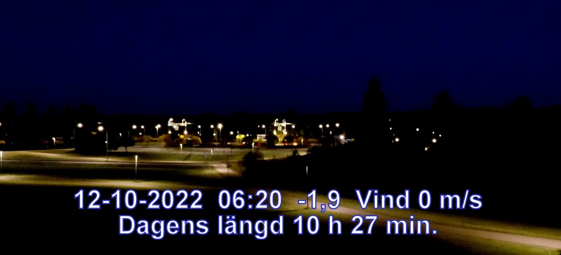 +6° C Vind 3 m/s Mulet, men troligen uppehåll Lufttryck 1016 hPa Sikt 27078 m Soluppgång 07:24 Solnedgång 17:47 Dagens längd 10 h 22 min.