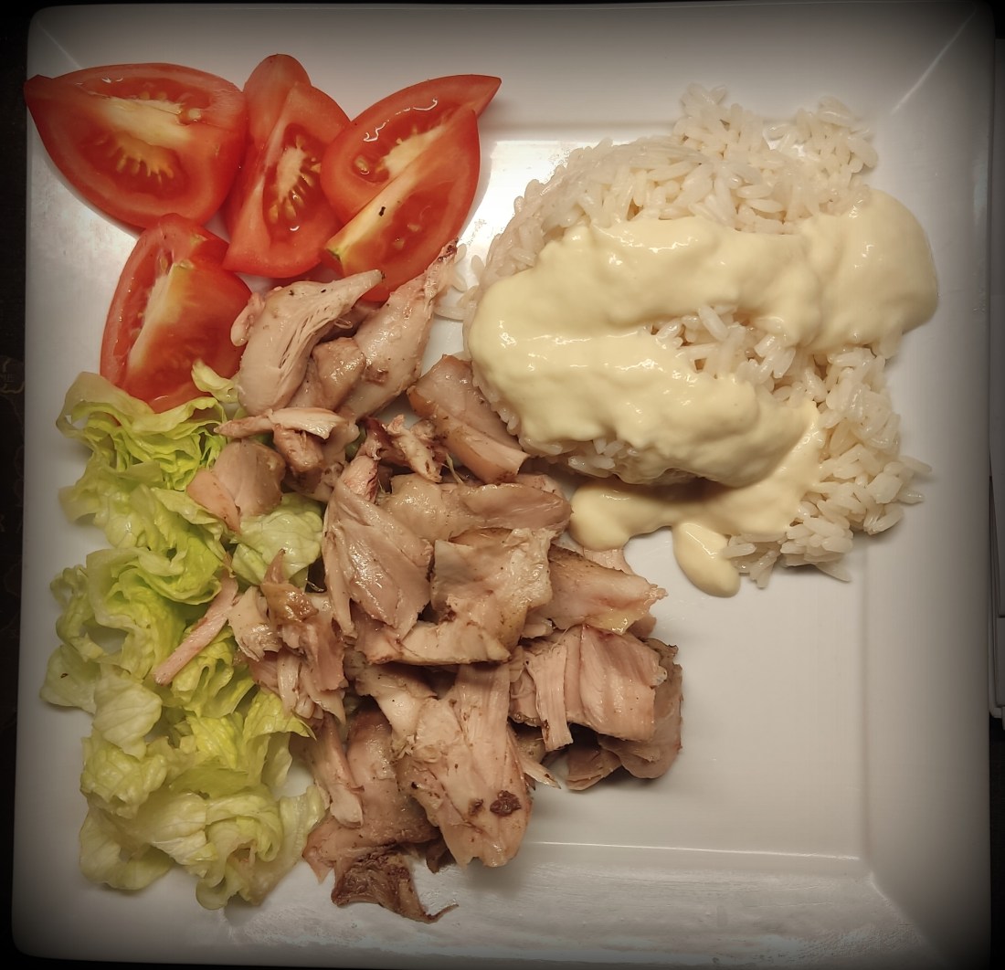 Det blev en dag gråare än gråast idag.Inte många knop blev det gjort idag..Men lite till magen fixade jag till..Det blev Kyckling en klubba som jag rensade bort det som inte var ätligt,,kokade lite ris,på tallriken sedan blev det tomat,lite grönt,kyckling och citronris,smakade bättre än jag hade trott innan..