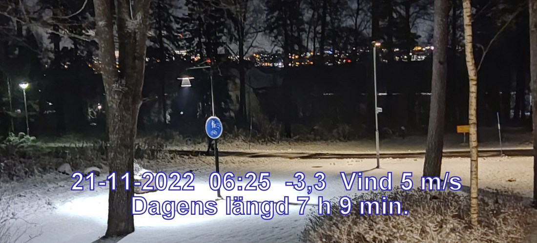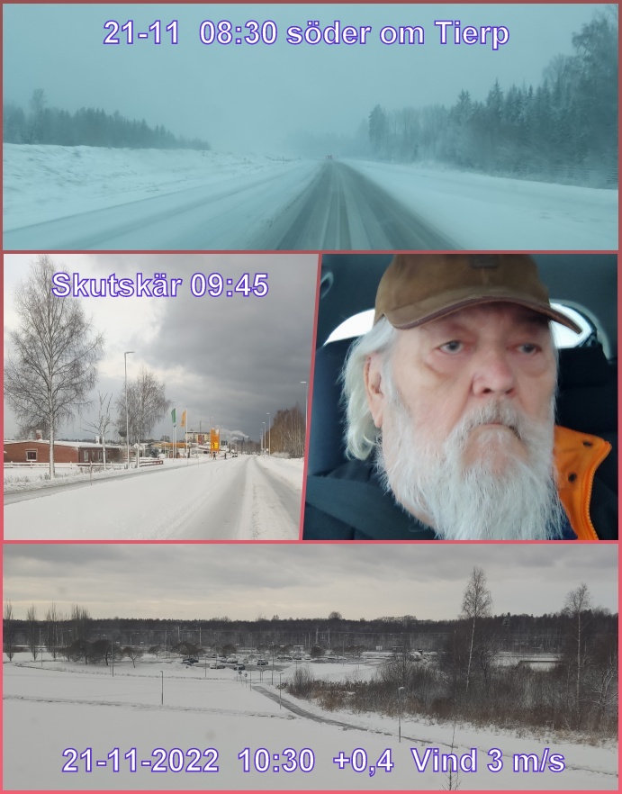 Det var inget önskeföre när jag lämnade Uppsala i morse,,man fick ha tungan i rätt mun,det var moddigt värre,vilket en del som hade bråttom tycktes ha missat.Efter Tierp så blev det lite bättre väglag,det slutade snöa..När jag kom till Skutskär så var himlen mörk i öster,men ljusare i väster.Snödjup ca 15 cm .