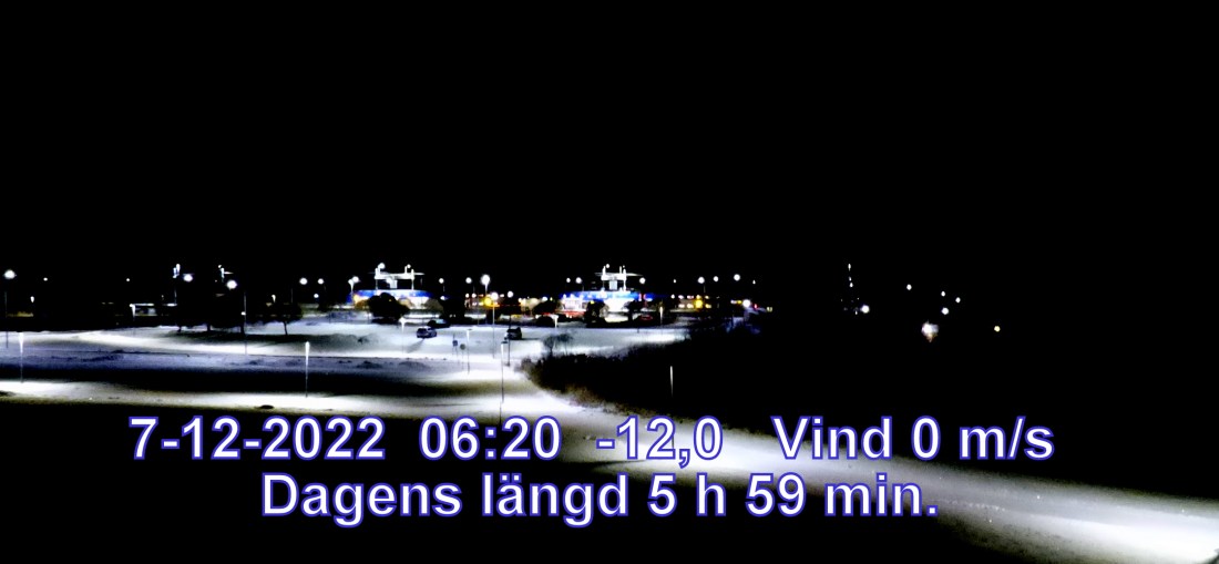 -11° C Vind 0 m/s Klart och uppehållsväder Lufttryck 1009 hPa Sikt 50000 m Soluppgång 08:41 Solnedgång 14:41 Dagens längd 5 h 59 min.