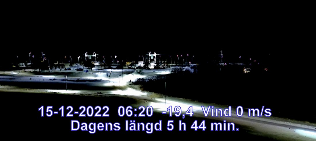 -17° C Vind 0 m/s Mulet, men troligen uppehåll Lufttryck 1001 hPa Sikt 11775 m Soluppgång 08:53 Solnedgång 14:37 Dagens längd 5 h 44 min.