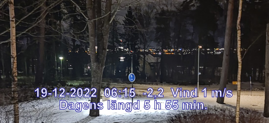 -6° C Vind 1 m/sMulet, men troligen uppehåll Känns som-6° Lufttryck 1023 hPa Daggpunkt-6° Fukti ghet 100 % Sikt 9999 mSoluppgång 08:48 Solnedgång 14:44 Dagens längd 5 h 55 min.