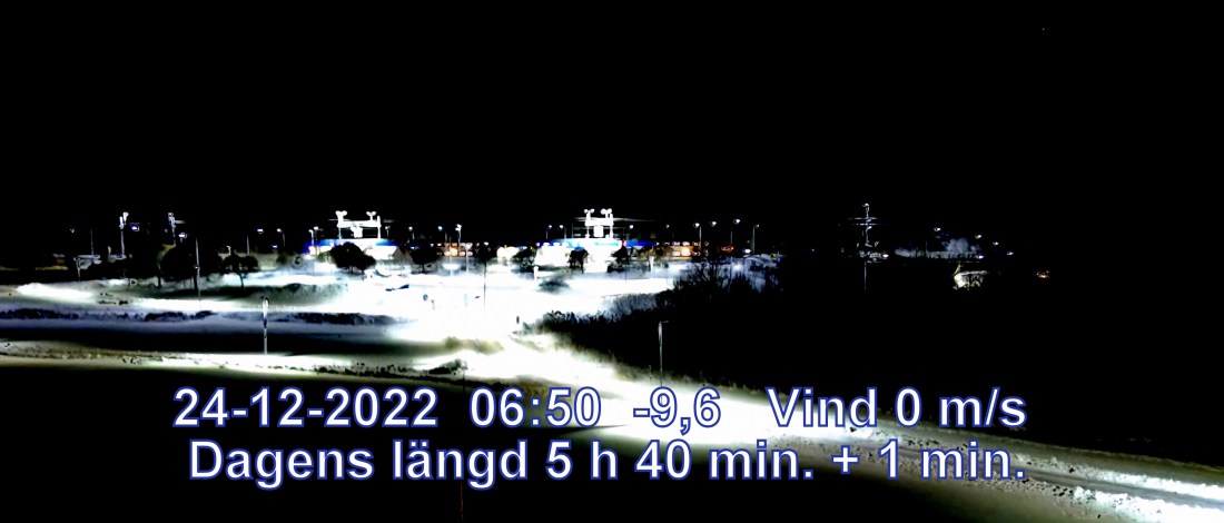 -16° C Vind 0 m/s Klart och uppehållsväder Lufttryck 1007 hPa Sikt 41355 m Soluppgång 08:59 Solnedgång 14:39 Dagens längd 5 h 40 min.