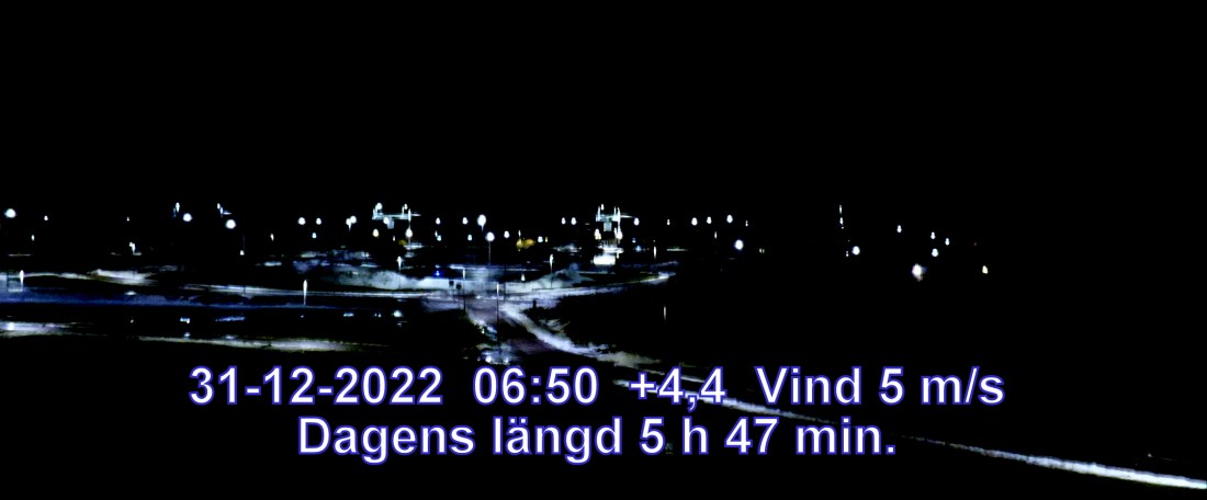 +4° C Vind 5 m/s Mulet, men troligen uppehåll Lufttryck 985 hPa Sikt 36184 m Soluppgång 08:59 Solnedgång 14:47 Dagens längd 5 h 47 min.