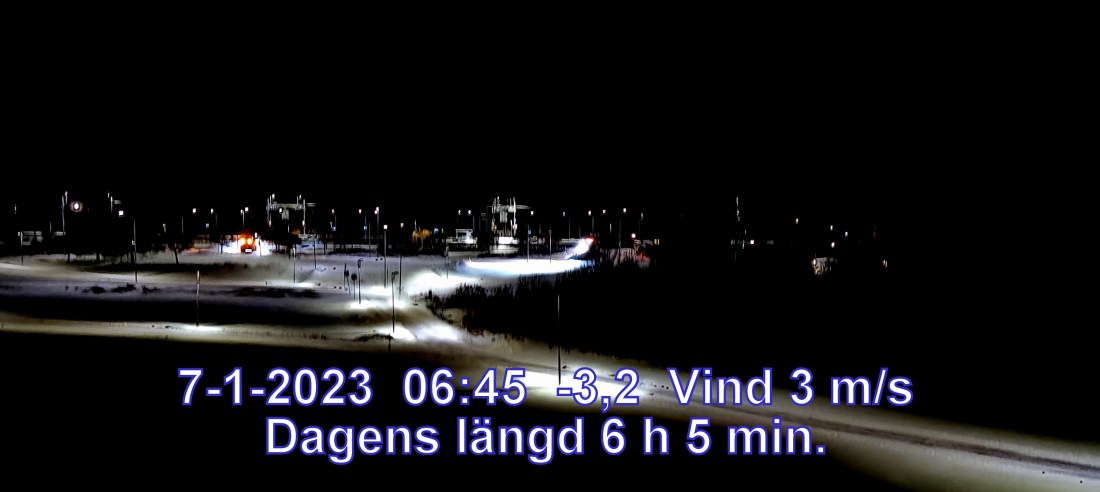-3° C Vind 3 m/s Mulet, men troligen uppehåll Lufttryck 1015 hPa Soluppgång 08:54 Solnedgång 14:59 Dagens längd 6 h 5 min.