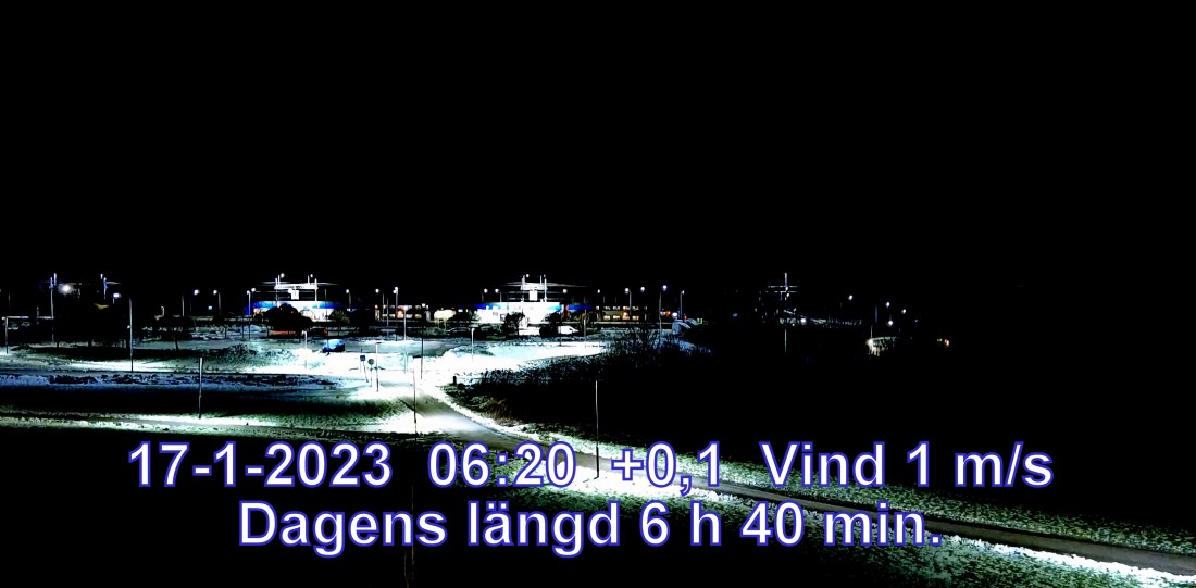 0° C Vind 1 m/s Mulet, men troligen uppehåll Lufttryck 992 hPa Sikt 14622 m Soluppgång 08:40 Solnedgång 15:21 Dagens längd 6 h 40 min.