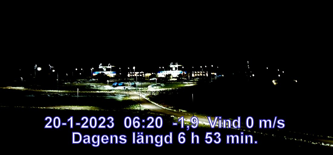-4° C Vind 1 m/s Mulet, men troligen uppehåll Lufttryck 1032 hPa Soluppgång 08:33 Solnedgång 15:31 Dagens längd 6 h 58 min.