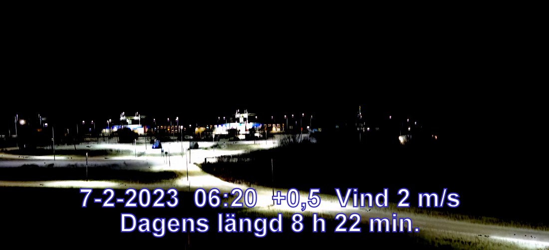 0° C Vind 2 m/s Mulet, men troligen uppehåll Lufttryck 1030 hPa Sikt 50000 m Soluppgång 07:53 Solnedgång 16:16 Dagens längd 8 h 22 min.