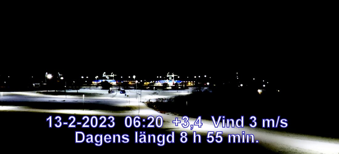 +3° C Vind 3 m/s Mulet, men troligen uppehåll Lufttryck 1021 hPa Sikt 50000 m Soluppgång 07:37 Solnedgång 16:32 Dagens längd 8 h 55 min.