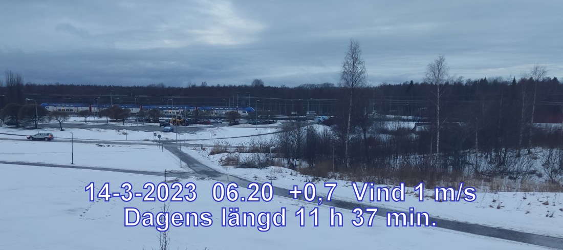 +1° C Vind 1 m/s Mulet, men troligen uppehåll Lufttryck 970 hPa Sikt 16467 m Soluppgång 06:11 Solnedgång 17:48 Dagens längd 11 h 37 min.