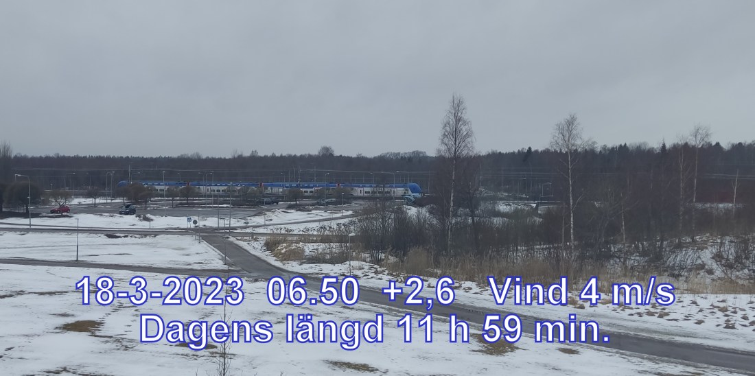 +2° C Vind 4 m/s Mulet, men troligen uppehåll Lufttryck 1006 hPa Sikt 9827 m Soluppgång 05:59 Solnedgång 17:58 Dagens längd 11 h 59 min.