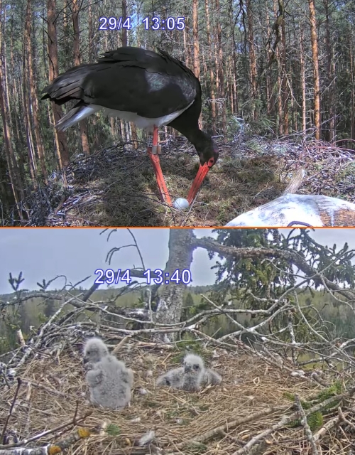 Jag har haft lite mer bevakning av Storkboet,har haft lite svårt att skilja på vem är vem,när inte numret på märkringen synts,har nu upptäckt en skillnad på det andra benet,Kaia´s ring där är mindre än ringen på Karl..Här en bildsvit där det sker ett skifte av Kaia lämnar över till Karl.det är ca 6 min mellan bild 1 och 4 .1,Kaia reser sig..2,Karl landar..3, Kaia lämnar över..4, Kaia lämnar boet.