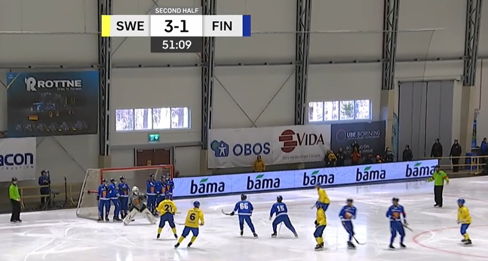 Kollar på VM-finalen i bandy Swe-Fin vi leder med 3-1 nu i andra halvlek..