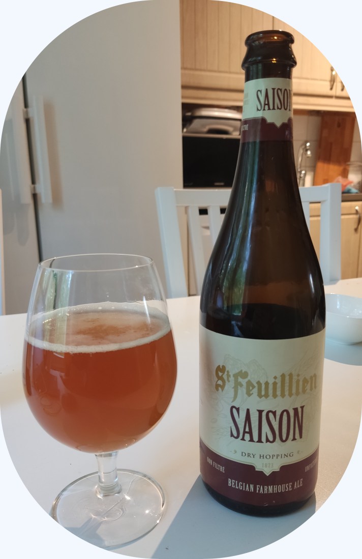En icke tidigare provad Belgisk öl,en Saison ofiltrerad,smakade inte så tokigt,bra drag var det i den 6,5 %..Kunde dock inte känna de smaker som beskrevs i smakprofilen…Nyanserad smak med liten sötma, inslag av torkade aprikoser, mörkt bröd, kryddor, ljus sirap och lakrits.Vilket kan bero på ren okunnighet..Utan den smakade riktigt bra..