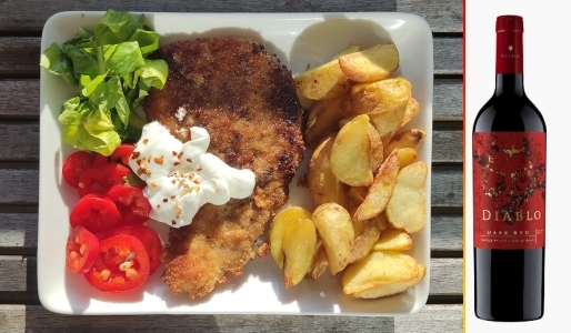 Vädret idag inbjöd till balkonghäng på em,,när det blev dags för mat,efter ishockeyn på Tv,så hade jag en fläskfilé i kylen.Jag putsade den skar den i 4 bitar,som jag bankade ut till snitzlar,stekte på dom,körde lite potatisklyftor i airfryern,lite grönt och en youghurtsås med chiliflakes fick plats på tallriken. Öppnade en flaska rött från Chile,som smakade utmärkt till rätten..Gott.
