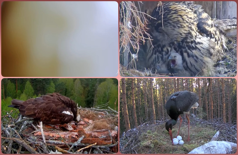 Skitungen i Havsörnsboet har sabbat kameran där..Berguvens ungar är synliga mer nu,har sett 3 st tydligt..Mamma Gjuse rullar på de 3 äggen..Mamma Stork har lagt ett till ägg i natt,är noga med att rulla runt dom..