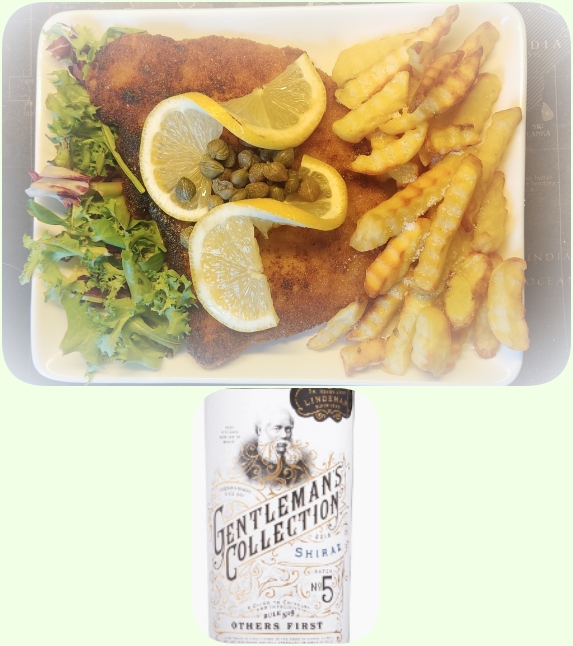 Det blev en fläsksnitzel med pommes lite grönt citron och kapris..I glaset den röda Gentlemannen från Australien..