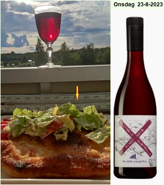 På tallriken blev det en rejäl fläsksnitzel och en röra med Majo,tomat,kapris, isbergssallad,lite salt o peppar.Eftersom det är lilllördag så blev det lite rött i glaset,en 3,5 poängare från Australien.I mitt öra hade jag min bror som spelar och sjunger en gammal goding från 1957.”Silent Lips”..Ingenting (Har Du Sagt Till Mig Om Kärlek)