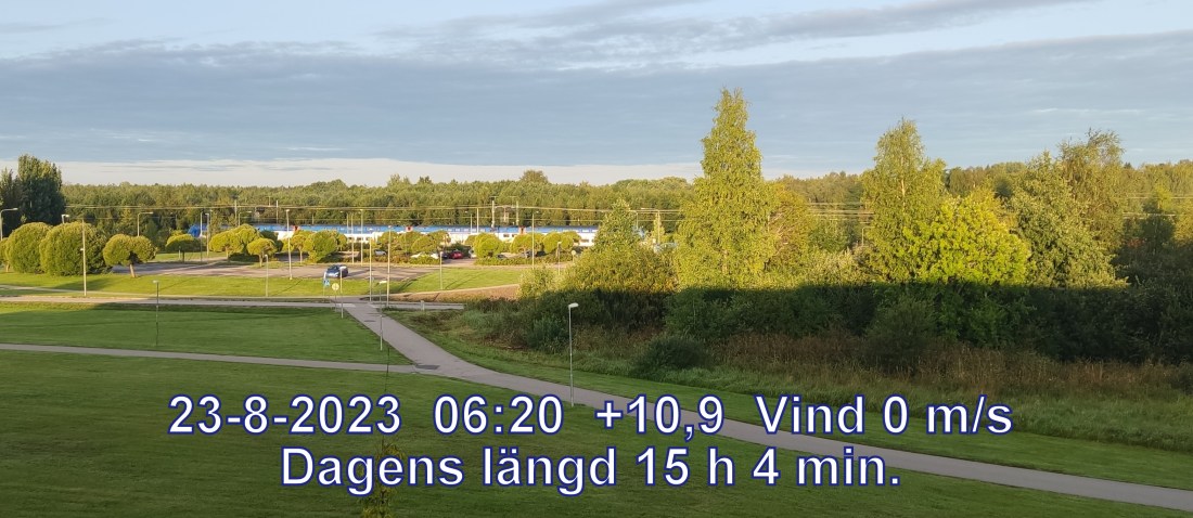 +11° C Vind 0 m/sKlart och uppehållsväder Känns som+10° Lufttryck 1012 hPa Daggpunkt+10° Fuktigh 99 % Sikt 40290 m Soluppgång 05:20 Solnedgång 20:24 Dagens längd 15 h 4 min.