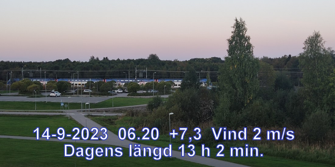+5° C Vind 2 m/s Klart och uppehållsväder Känns som+4° Lufttryck 1020 hPa Daggpunkt+3° Fuktigh 90 % Sikt 50000 m Soluppgång 06:13 Solnedgång 19:16 Dagens längd 13 h 2 min.