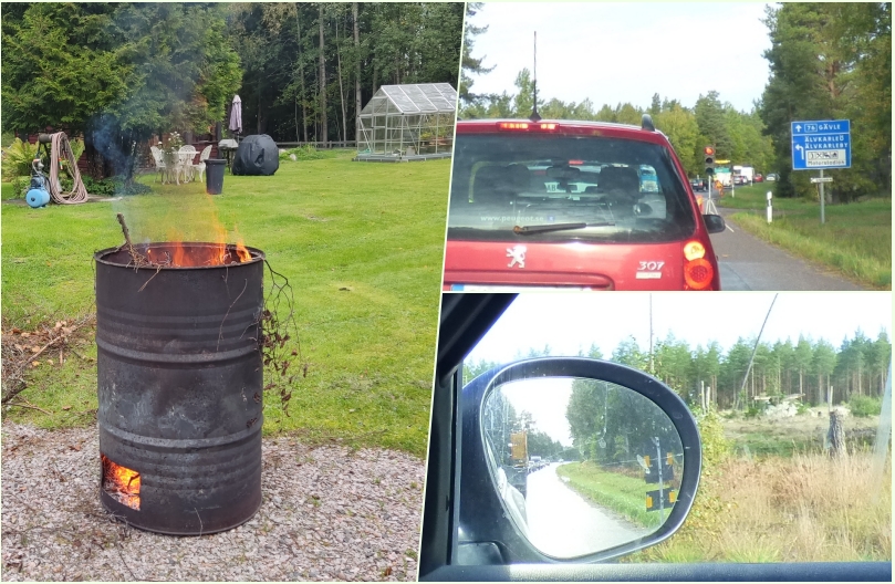 Det blev jag varse i morse,när jag körde ner till Sandby,långa köer åt båda håll på grund av asfaltering av 76;an genom Skutskär..När jag körde från Sandby på förmiddagen,så tog det drygt 20 minuter att köra en dryg kilometer genom samhället..Körde till Mårtsbo för att hälsa på en kamrat,,där var det höststädning av tomten på gång.Eldtunnan jobbade på bra,röken gjorde så att det var tämligen myggfritt..Blev fika och en del surr..