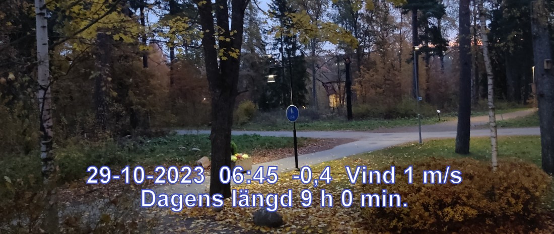 -1° C Vind 1 m/sMulet, men troligen uppehåll Känns som-1° Lufttryck 1009 hPa Daggpunkt-1° Fuktigh 91 % Sikt75000 m Soluppgång 07:02 Solnedgång 16:02 Dagens längd 9 h 0 min.
