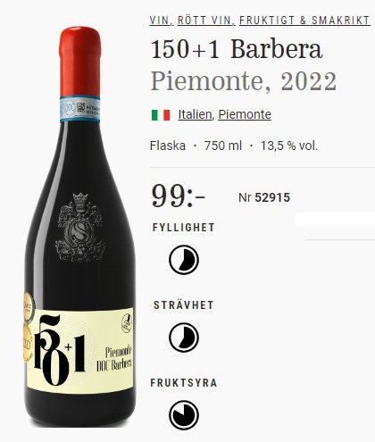I glaset en Italienare från Piemonte 150+1 DOC Barbera 2022.