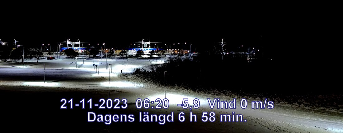 -6° C Vind 0 m/s Mulet och något snö Känns som-6° Lufttryck 1023 hPa Daggpunkt-7° Fuktigh 90 % Sikt 50000 m Soluppgång 08:06 Solnedgång 15:04 Dagens längd 6 h 58 min.