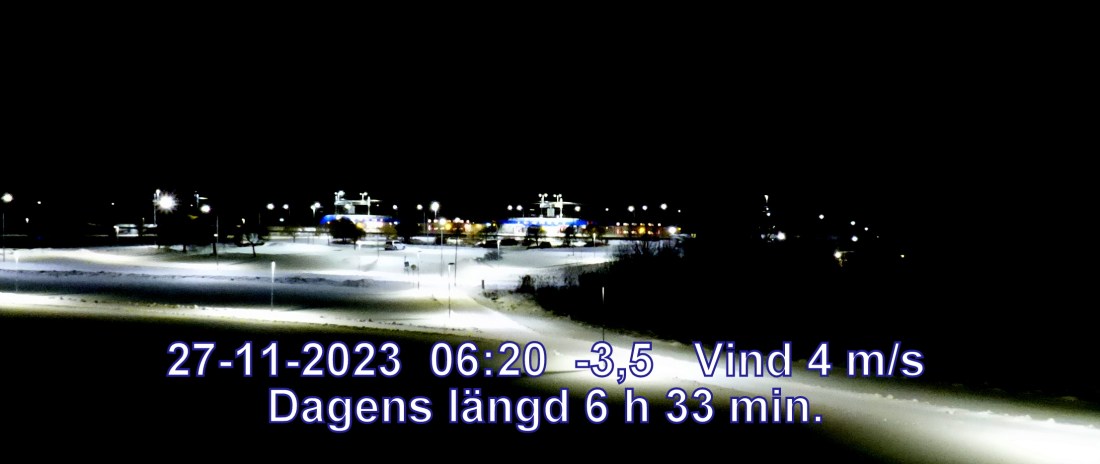 -3° C Vind 4 m/s Mulet och något snö Känns som-9° Lufttryck 1014 hPa Daggpunkt-8° Fuktigh 65 % Sikt 29170 m Soluppgång 08:20 Solnedgång 14:54 Dagens längd 6 h 33 min.