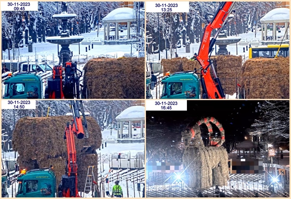 I morse kl 09:45 anlände den världsberömda Gävlebocken till stan..Bockens 4 ben kom på plats var inmåttade och klara för att ta emot kroppen kl 13:25.. Kroppen lyftes upp och efter lite baxande både hit och dit 14:50 var den där.. Huvudet med hornen var på sin plats 16:45 arbetet återupptas i morgon..