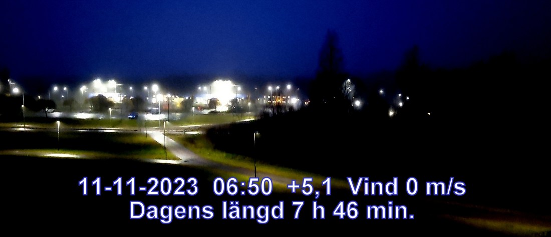 -4° C Vind 2 m/s Mulet, troligen uppehåll Känns som-8° Lufttryck 1020 hPa Daggpunkt-5° Fuktigh 88 % Sikt 50000 m Soluppgång 07:53 Solnedgång 15:15 Dagens längd 7 h 21 min.