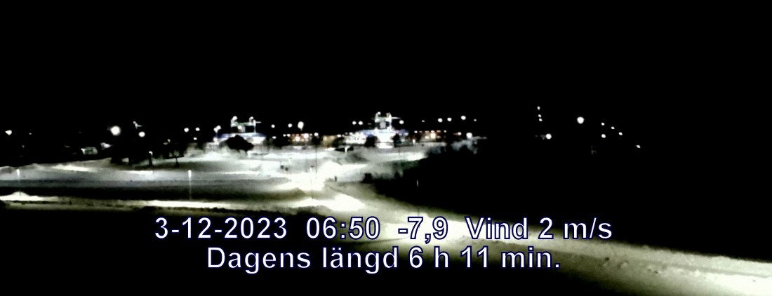 -9° C Vind 2 m/s Mulet och något snö Känns som-14° Lufttryck 1017 hPa Daggpunkt-10° Fuktigh 86 % Sikt 7420 m Soluppgång 08:33 Solnedgång 14:45 Dagens längd 6 h 11 min.